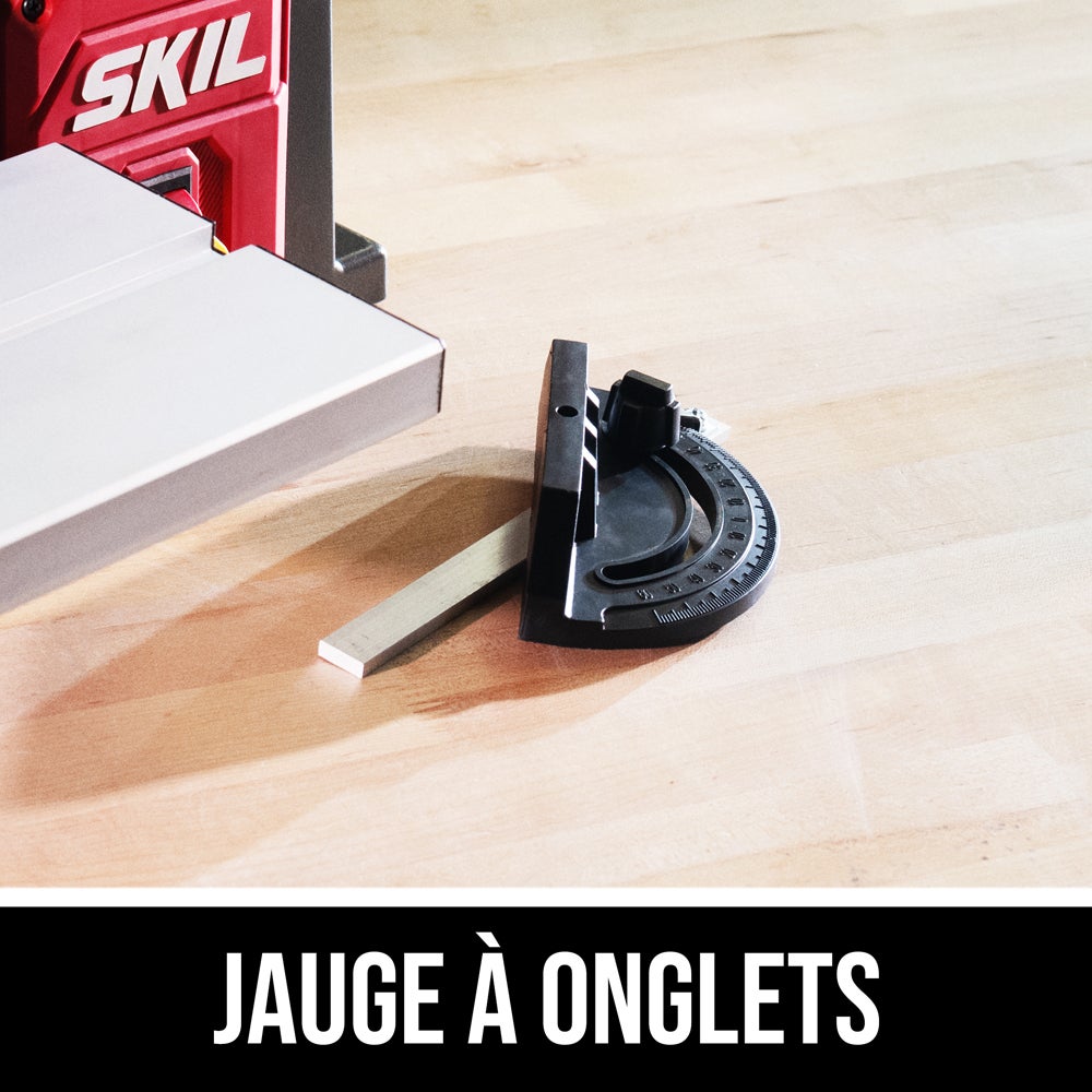 - JAUGE À ONGLETS—Pour guider l’ouvrage lors de coupes transversales