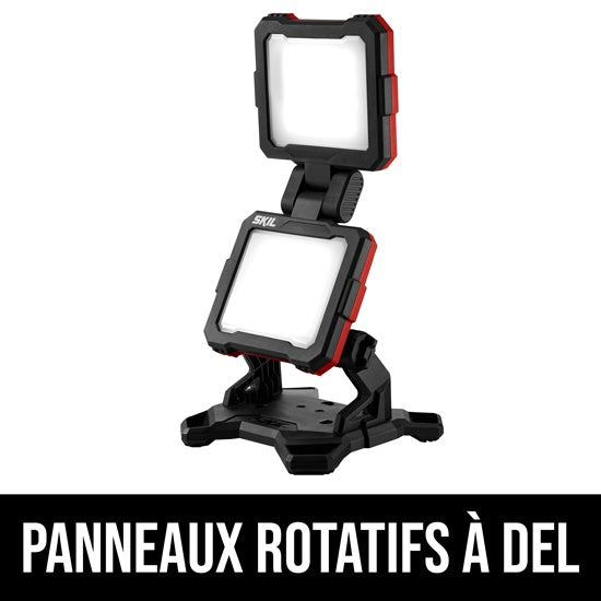 La puissance de plusieurs lampes de travail, maintenant dans un seul projecteur d’illumination pratique et puissant SKIL PWRCORE 20™. Avec deux panneaux à DEL ultra lumineux pour éclairer facilement les grandes zones de travail. Choisissez parmi trois réglages – haute intensité (1 800 lumens), basse intensité (900 lumens) ou panneau unique (450 lumens) – et tournez facilement l’un ou l’autre panneau pour diriger la lumière. Cette lampe de travail éclairera le travail grâce à la technologie du lithium PWRCORE 20™, qui offrent une plus grande autonomie. Fait partie du système PWRCORE 20™. Ce luminaire utilise les mêmes piles que vos autres outils SKIL PWRCORE 20™.
