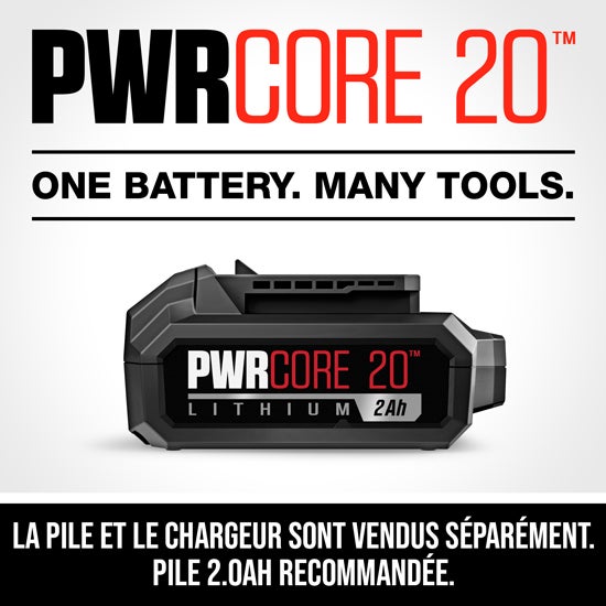 - AUTONOMIE DE FONCTIONNEMENT ET DURÉE DE VIE DES PILES PLUS LONGUES - La technologie de pointe de la pile au lithium PWRCORE 20™ enveloppe chaque cellule avec un matériau de refroidissement afin de la maintenir sous tension pour une autonomie de fonctionnement 25 % plus longue et une durée de vie des piles deux fois plus longue. Pile vendue séparément.