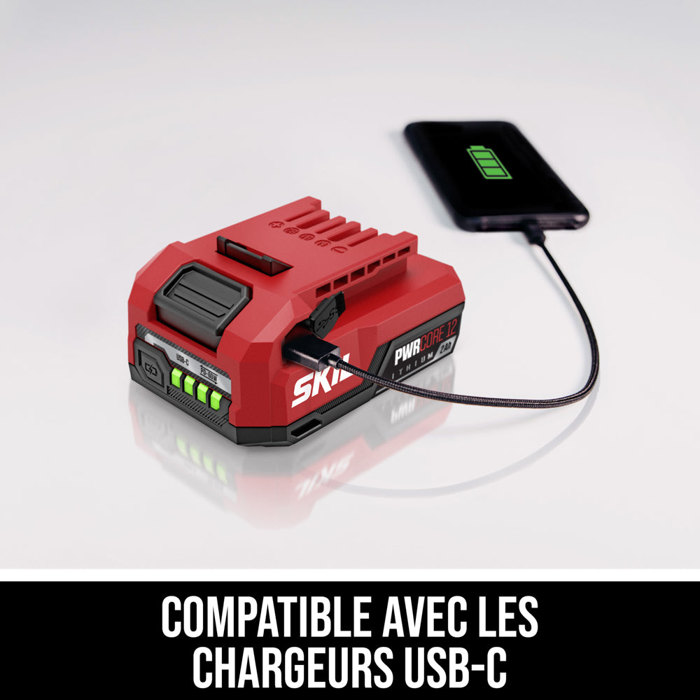 - COMPATIBLE AVEC LES CHARGEURS USB-C - Chargez la pile avec n’importe quel chargeur SKIL de 12 V (vendu séparément) ou n’importe quel bloc de charge USB-C domestique