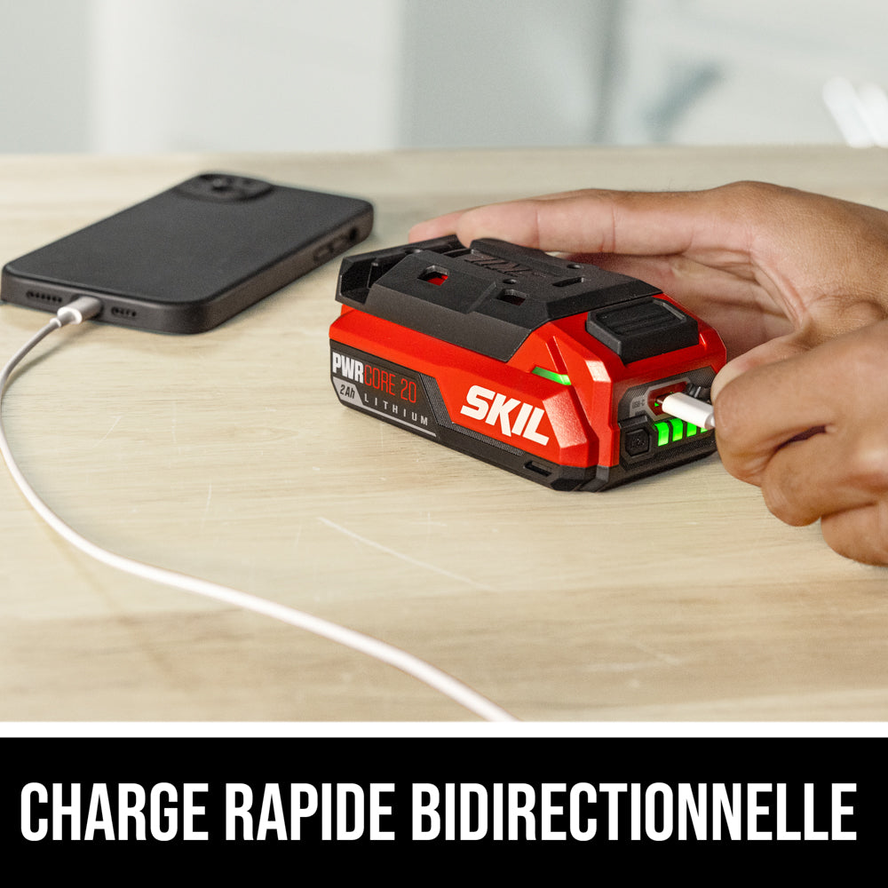 - PILE 20 % PLUS COMPACTE—La pile plus petite et plus compacte pour une fatigue réduite par rapport aux piles SKIL avec port USB-A