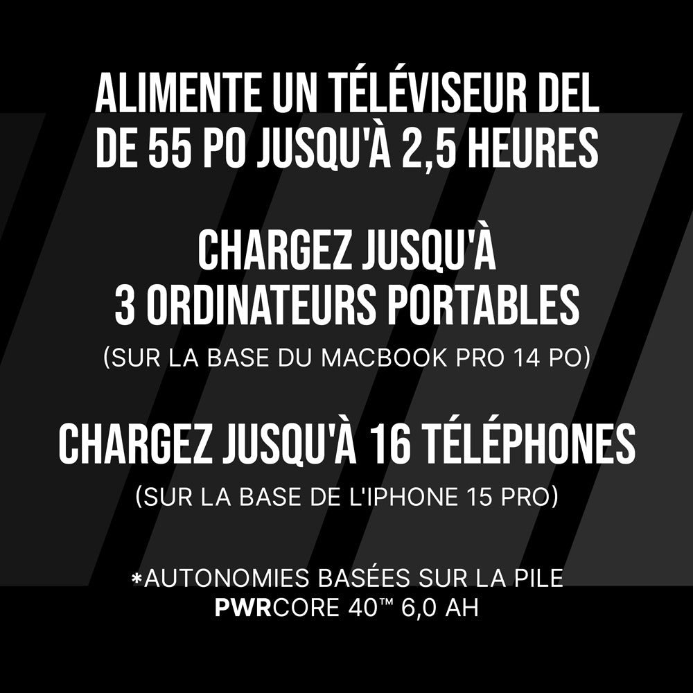 - ALIMENTE SIMULTANÉMENT JUSQU'À QUATRE APPAREILS – Via une prise standard de 120 V ou des ports de sortie USB-A, USB-C et USB-C PD de 65 W