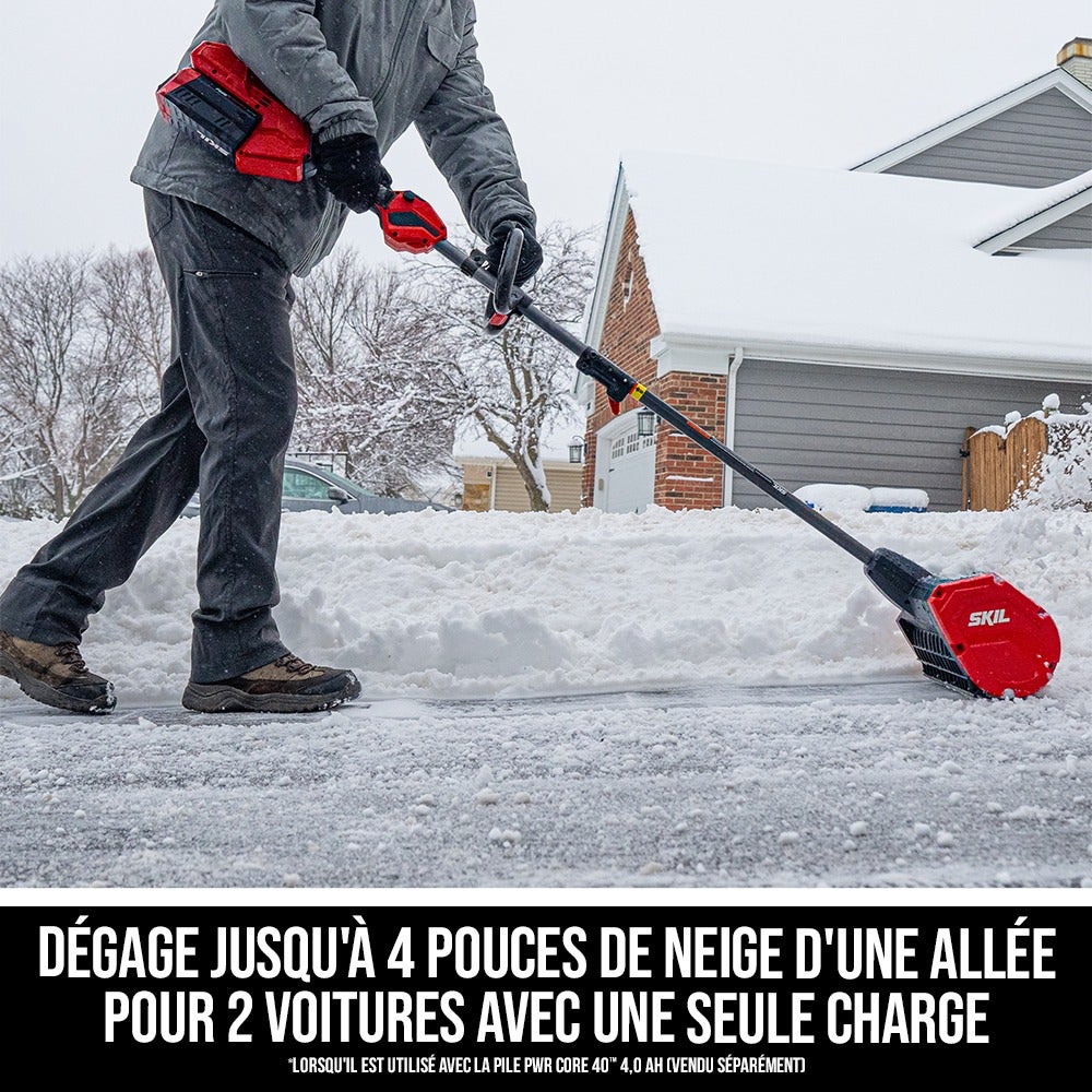 Dégagez facilement les allées, les trottoirs et les terrasses avec l’attachement de pelle à neige SKIL PWRCORE 40™ de 12 po. Conçu pour être utilisée avec le bloc moteur SKIL de 40 V à plusieurs têtes (vendu séparément), cet attachement de pelle à neige sans fil dégage un chemin de 12 po de large et projette la neige jusqu’à 20 pi de distance. Résistance à l’eau conforme à la norme IPX4 – Pour une durabilité accrue en cas de mauvais temps. Cet attachement de pelle à neige électrique est équipé d’une vis sans fin en plastique, ce twoqui rend la pelle idéale sur les surfaces délicates des terrasses et des patios pour un déneigement sans effort.