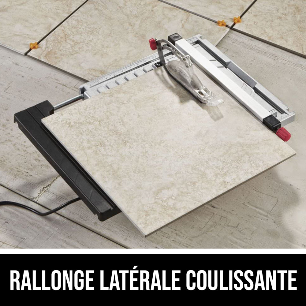- La rallonge latérale coulissante fournit du soutien pour les carreaux jusqu’à 18 x 18 po.