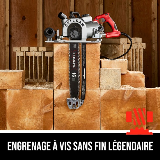 Scie à chaîne à entraînement par vis sans fin pour grosse menuiserie de 16 po