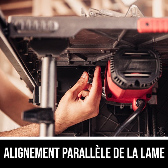 - ALIGNEMENT DE LA LAME PARALLÈLE - Possibilité de micro-réglage de la lame pour qu’elle soit parallèle au guide de refente et à la fente d’onglet