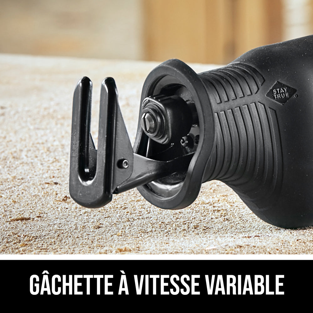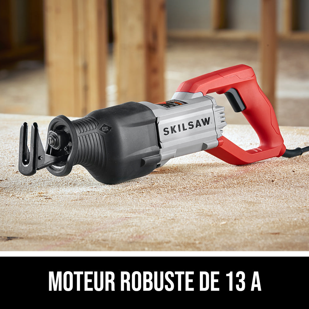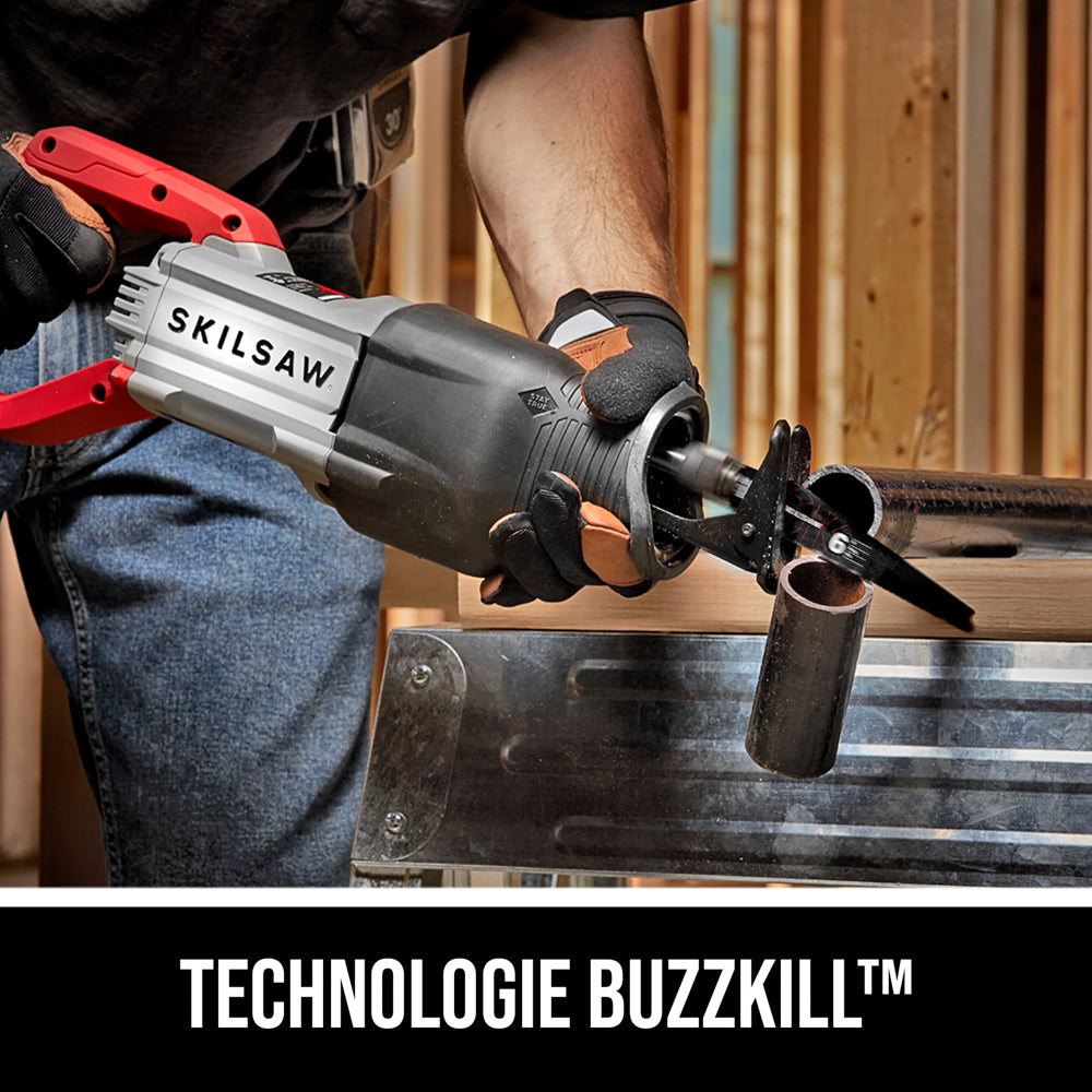 La scie alternative SKIL de 13 A rejoint la gamme légendaire des outils SKIL pour vous permettre de travailler plus efficacement qu’avec toutes les autres scies alternatives avec lesquelles vous avez déjà travaillé. Cette scie incorpore la technologie brevetée BUZZKILL™, qui met fin aux vibrations avant même qu’elles ne commencent sérieusement et qui supprime les vibrations jusqu’à 35 % mieux que les scies de la concurrence. Cela se traduit par des coupes confortables et contrôlées qui n’useront pas votre outil et ne vous fatigueront pas. Vous remarquerez la différence dès la première fois que vous tirerez sur la gâchette. La puissance de 13 A de cette scie SKIL vous permet de déchiqueter même les matériaux les plus récalcitrants. La gâchette de variateur de vitesse vous permet de contrôler la situation, quel que soit le matériau que vous coupez. Saisissez la nouvelle scie alternative SKIL de 13 A avec la technologie BUZZKILL™ Technology qui démolit beaucoup plus que les vibrations.