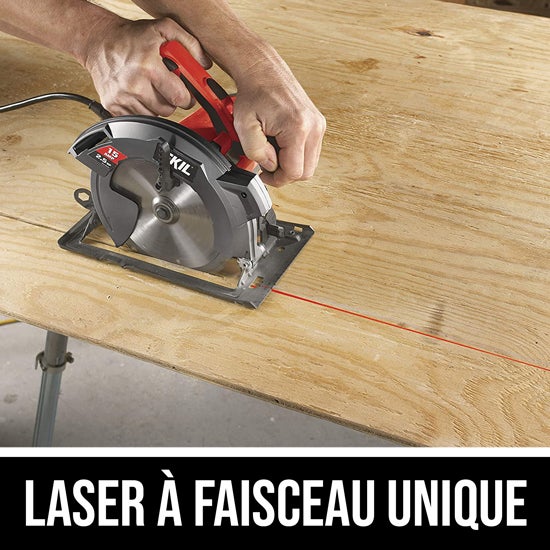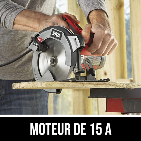 La scie circulaire filaire SKIL de 15 A, 7-1/4 po avec laser est une scie puissante pour les bricoleurs à la recherche de fonctions avancées. La scie circulaire électrique est équipée d’un moteur de 15 A, 2,5 HP qui délivre jusqu’à 5 300 tours/minute pour couper le bois et les matériaux en feuilles pour l’agrandissement d’une pièce, la construction d’une terrasse et de nombreux autres grands projets. Son laser à faisceau unique guide une coupe précise, tandis que le chasse-sciures intégré maintient la ligne de coupe exempte de sciures. Son biseau de 51 degrés avec butée positive à 45 degrés permet de réaliser des coupes variées avec une capacité de coupe maximale de 2-7/16 po. La scie est équipée d’un système de verrouillage de la broche et d’une aire de rangement de la clé sur l’outil pour permettre un changement de lame rapide et pratique. Cette scie SKIL est équipée d’une lame de scie circulaire au carbure de 24 dents de 7-1/4 po et d’un sac de transport.