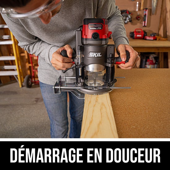Versatilité et puissance. Cette toupie pour le travail du bois vous permet de passer facilement d’une base fixe à une base pour coupe en plongée, et elle dispose d’une puissance de 14 ampères pour vous permettre d’entreprendre davantage de tâches. Grâce à la technologie de démarrage progressif, la toupie démarre lentement et monte en puissance pour laisser le temps de s’adapter. Plus des réglages précis de la profondeur et un contrôle de la vitesse pour maintenir un régime optimal. Les poignées ergonomiques limitent les vibrations et réduisent la fatigue lors d’une utilisation prolongée.