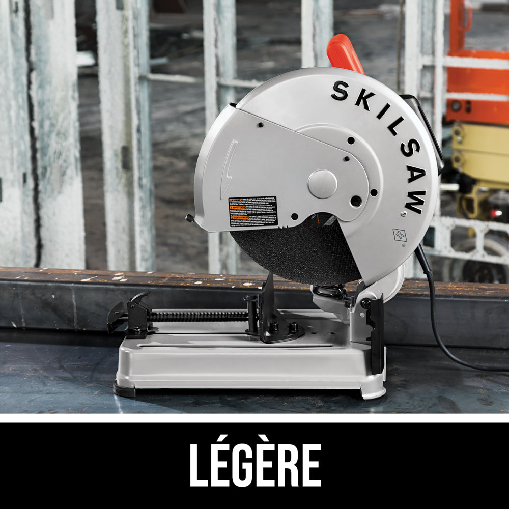 Ce qui est inclus: Scie à tronçonner abrasive SPT84 de 35,6 cm (14 po), disque abrasif pour métal SKILSAW® de 35,6 cm (14 po), clé (rangée dans la base)