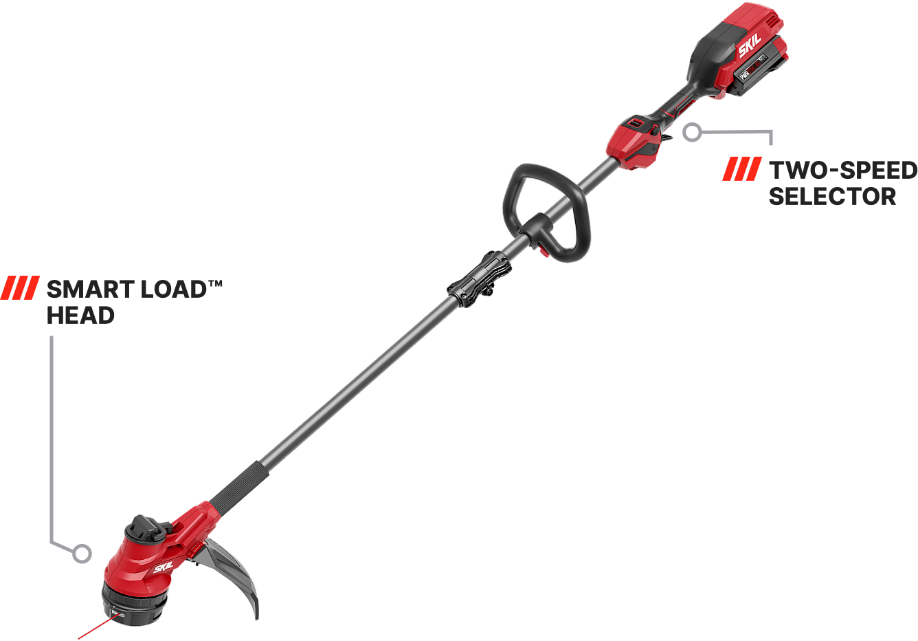 Replace your trimmer line in seconds. The Smart Load™ head allows fast, easy line loading with a simple crank.