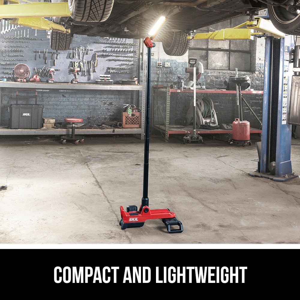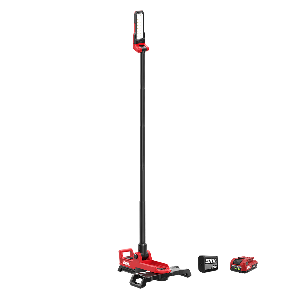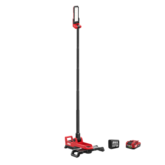 Direct light where you need it quickly and easily with the SKIL 12V/20V Compact Tower Light, powered by either PWRCORE 12™ or PWRCORE 20™ batteries. This compact tower light sets up quickly and easily without tools—simply flip out the legs, extend the pole, and get to work. Activate and adjust brightness across three settings—200, 1,000, or 2,500 lumens—with the foot control switch, and direct light where you need it with more control across a 270-degree pivot and swivel. Enjoy up to 4.5 hours of runtime at 1,000 lumens with the included PWRCORE 20™ 2.0Ah battery. You can also charge the battery or personal devices with the battery’s 100W USB-C port. When your work is done, the cordless light collapses and folds for a compact footprint for easy storage and transport. Kit includes the cordless light, 20V 2.0Ah USB-C battery, 20W USB-C PD charger, and a USB-C to USB-C cable.