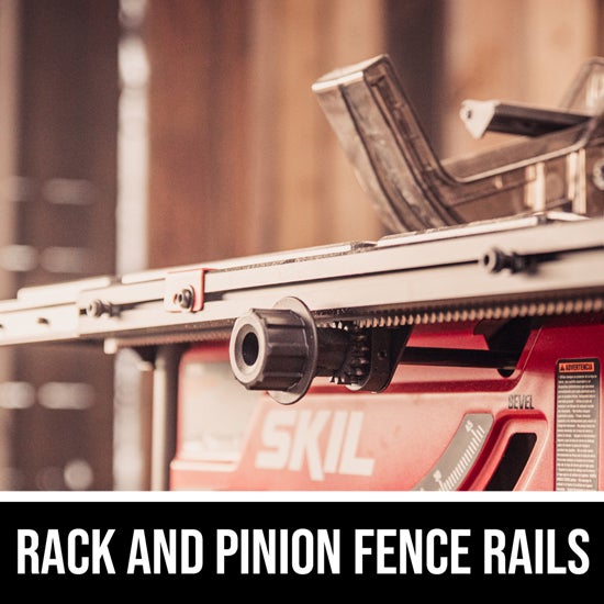 - RACK AND PINION FENCE RAILS – Ensures fence stays parallel to blade for fast, smooth, and accurate cuts