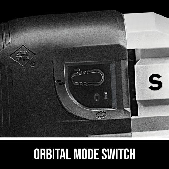 - Orbital mode switch cuts faster in wood applications