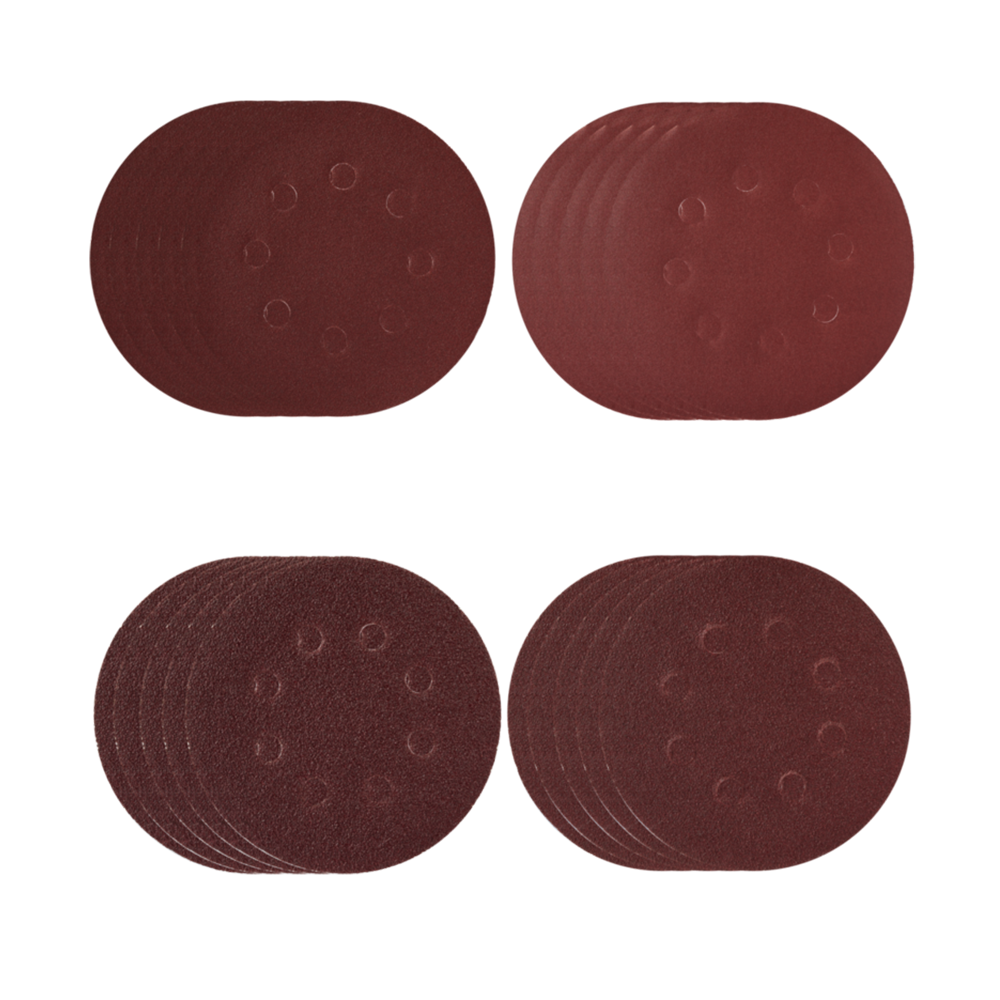 What's included: 20-piece 5 in. round sanding discs: [5] 60 Grit, [5] 80 Grit, [5] 120 Grit, [5] 240 Grit