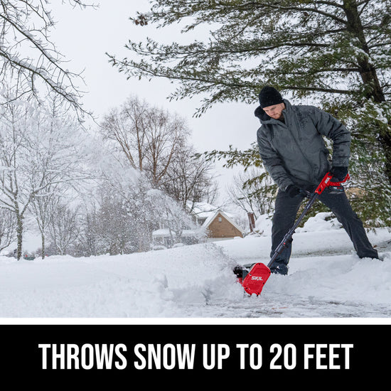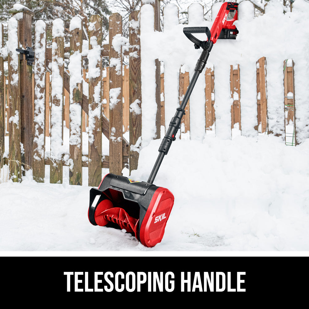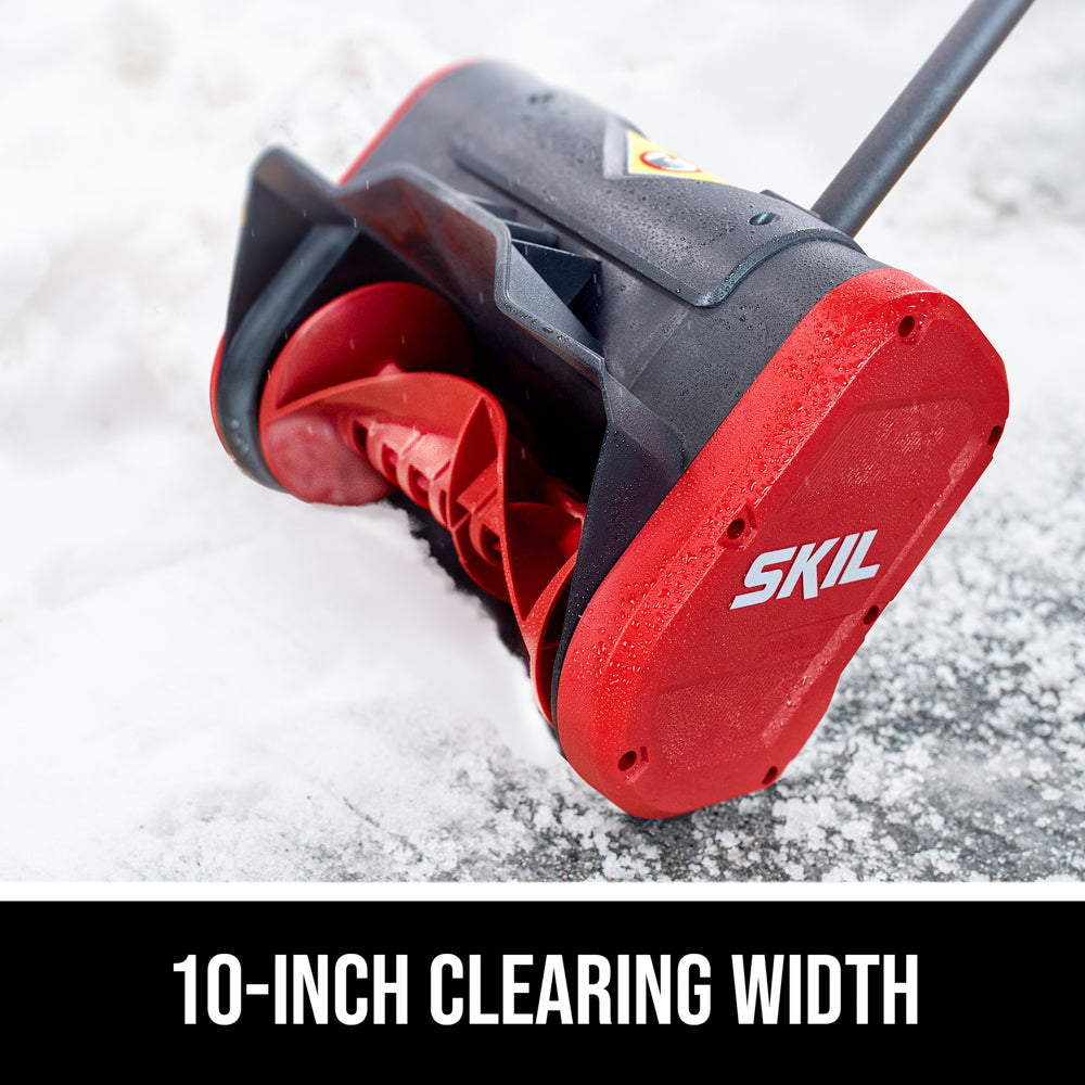 The SKIL 20V 10 In. Snow Shovel makes it easy to clear snow from walkways, patios, decks, and driveways without the physical effort of scooping and throwing. This battery-powered snow shovel clears a 10-inch-wide path and throws snow up to 20 feet away. This lightweight cordless snow shovel features a telescoping handle for optimal comfort along with a split shaft that folds for compact, easy storage. This cordless electric snow shovel features a plastic auger, making it ideal for use on deck and patio surfaces for effortless snow removal. The included 20V battery and charger are compatible with all SKIL tools in the PWR CORE 20™ family. The kit includes the 20V snow shovel, 4.0Ah battery, and 60W charger.