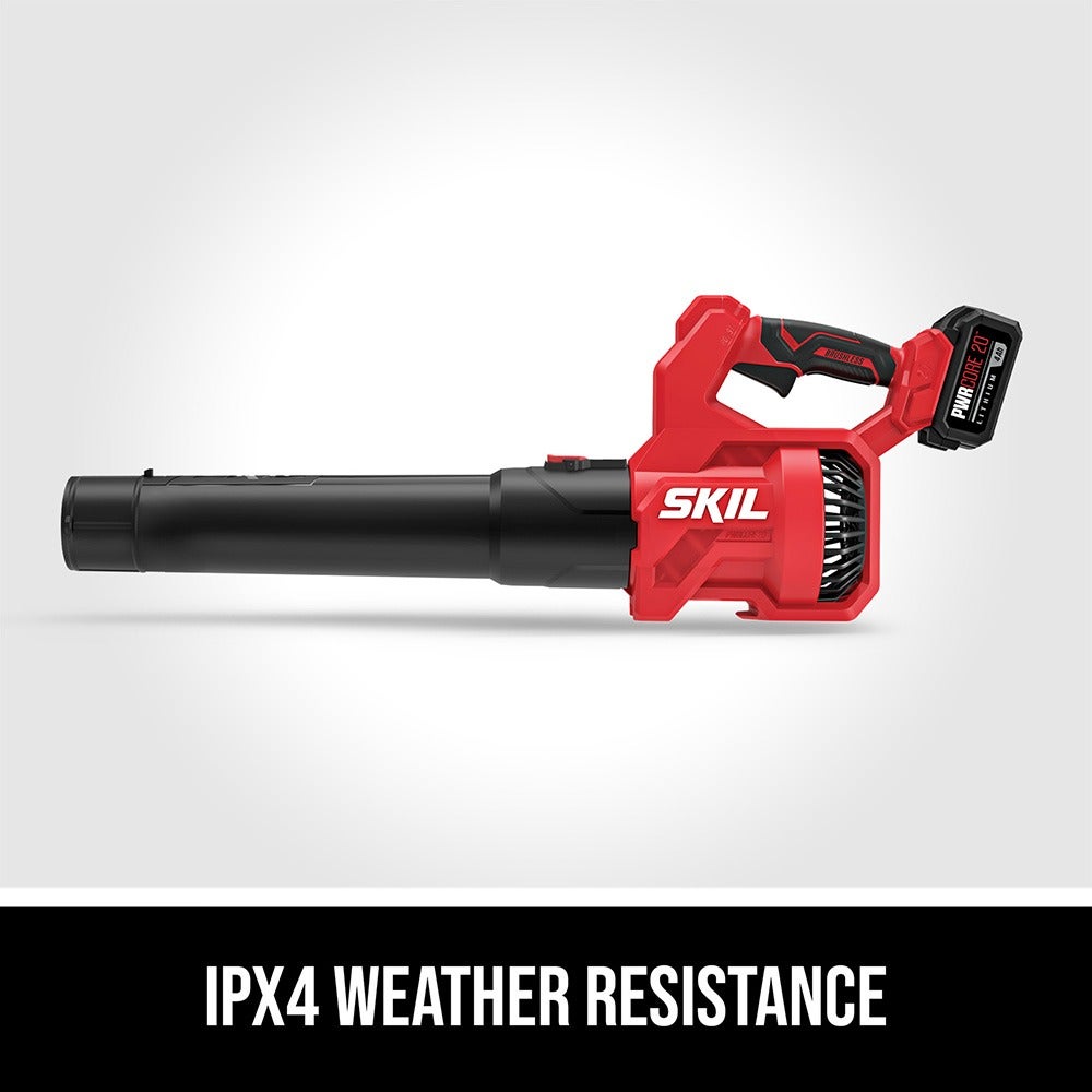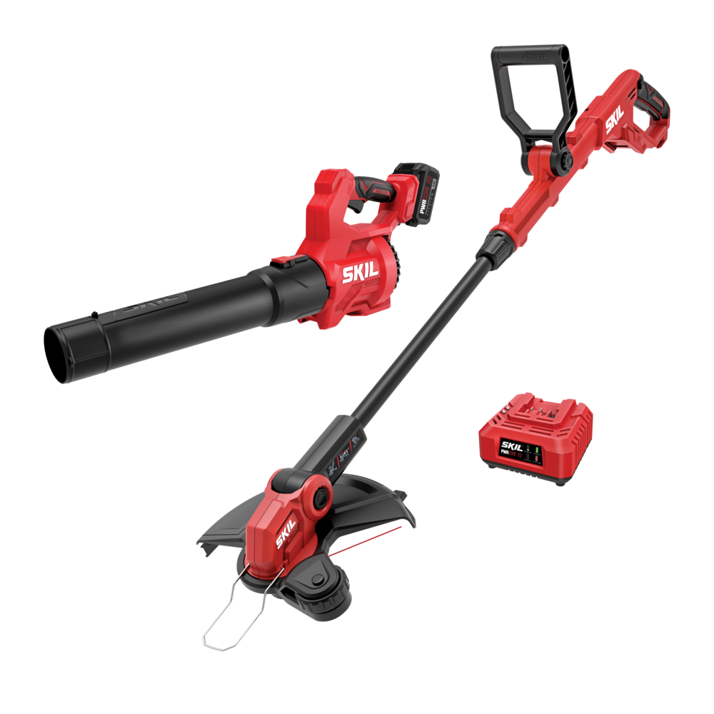 Level up your lawn care with the SKIL 20V 12 In. String Trimmer and 420 CFM Leaf Blower Combo Kit, which delivers the power of cordless convenience without the hassle of gas. Clear leaves and debris with the SKIL 20V 420 CFM Leaf Blower. The cordless electric leaf blower features a digital brushless motor that delivers up to 420 CFM and air speeds up to 105 MPH for powerful clearing performance. Tailor performance for any clearing task with its variable speed and power boost feature. IPX4-rated weather resistance provides added protection in inclement weather conditions. An included EASYSTORAGE bracket allows you to store and organize your SKIL outdoor power equipment quickly and easily. Transition between trimming and edging quickly and easily with the 2-in-1 functionality of the SKIL 20V 12 In. Pivoting Head String Trimmer. This cordless string trimmer features a pivoting head that rotates 90 degrees for easy transitions between trimming along flower beds and fence lines to edging along driveways, sidewalks, patios, and more. Its line auto feeds with each press of the trigger for trimming and edging efficiency without the need for bumping the head, with an up to 12-inch cutting swath. Dial in your working position with the telescoping shaft and an adjustable auxiliary handle for comfort and control. The outdoor power equipment combo kit includes the pivoting head string trimmer, cordless leaf blower, 20V 4.0Ah battery, 20V 60W charger, and EASYSTORAGE bracket.