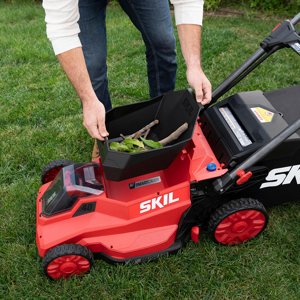- INTEGRATED SMART CADDY™ STORAGE SYSTEM – Save time by quickly storing objects and debris so you can keep mowing; built-in storage caddy detaches for easy emptying when finished
