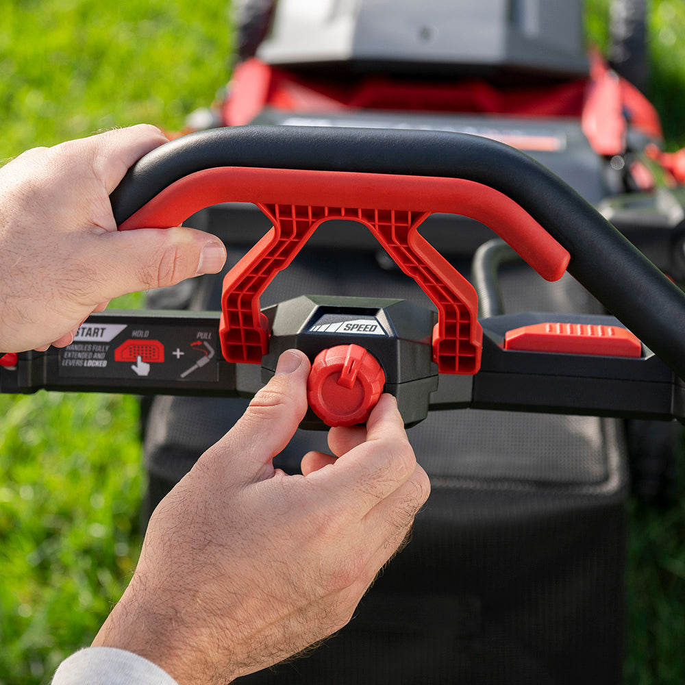 Easily adjust self-propelled mowing speeds from 0.9 to 3.1 MPH