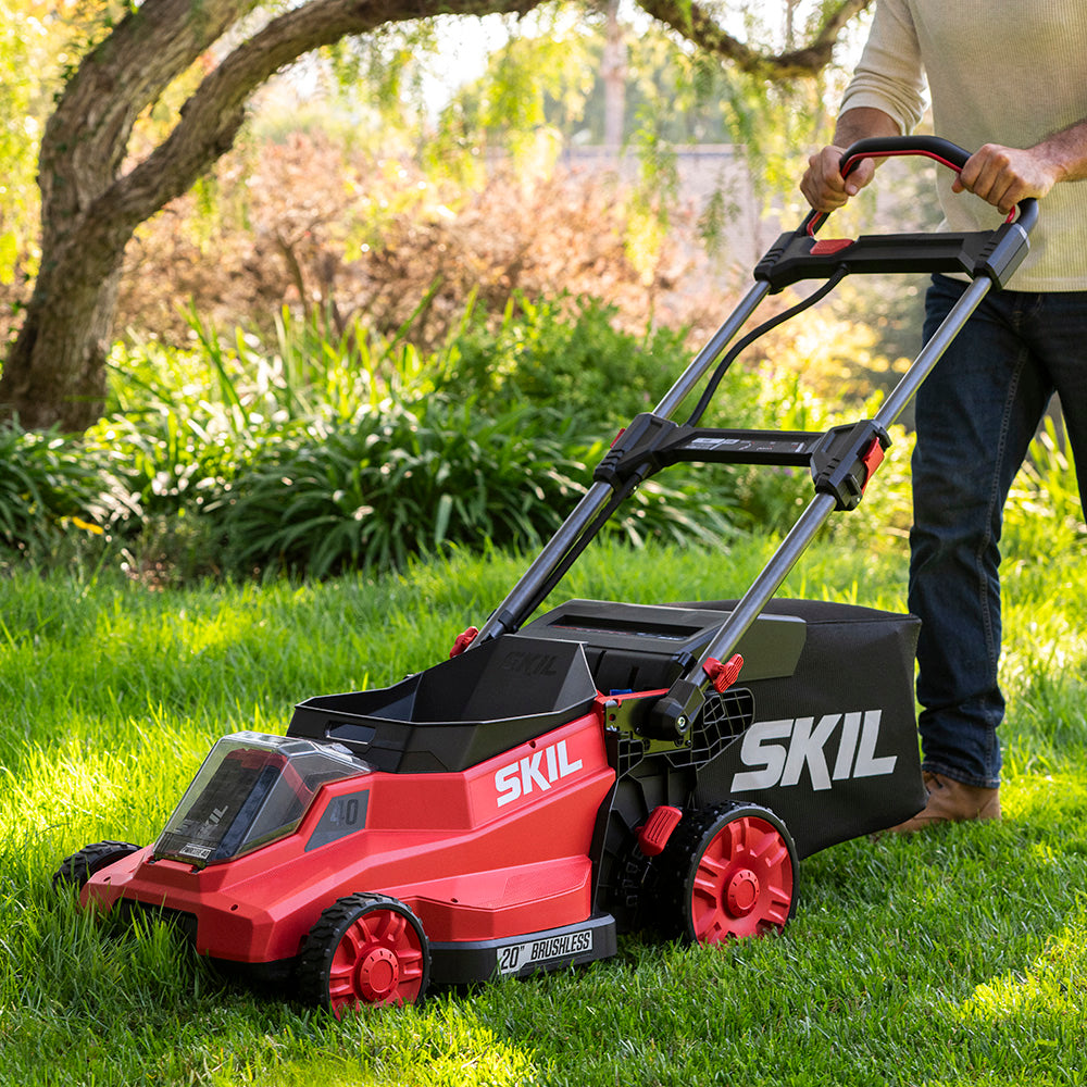 - CORDLESS LAWN MOWER WITH BATTERY AND CHARGER INCLUDED – Kit includes the 40V lawn mower, 7.5Ah battery, 150W Auto PWR JUMP™ Charger, Smart Caddy™ storage container, mulching plug, and grass bag