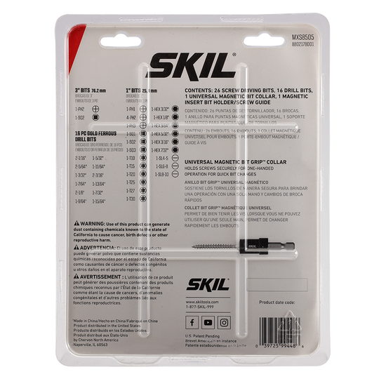 What's included: (26) Screwdriving Bits, (16) Drill Bits , (1) Universal Magnetic Bit Collar, (1) Magnetic Insert Bit Holder/Screw Guide