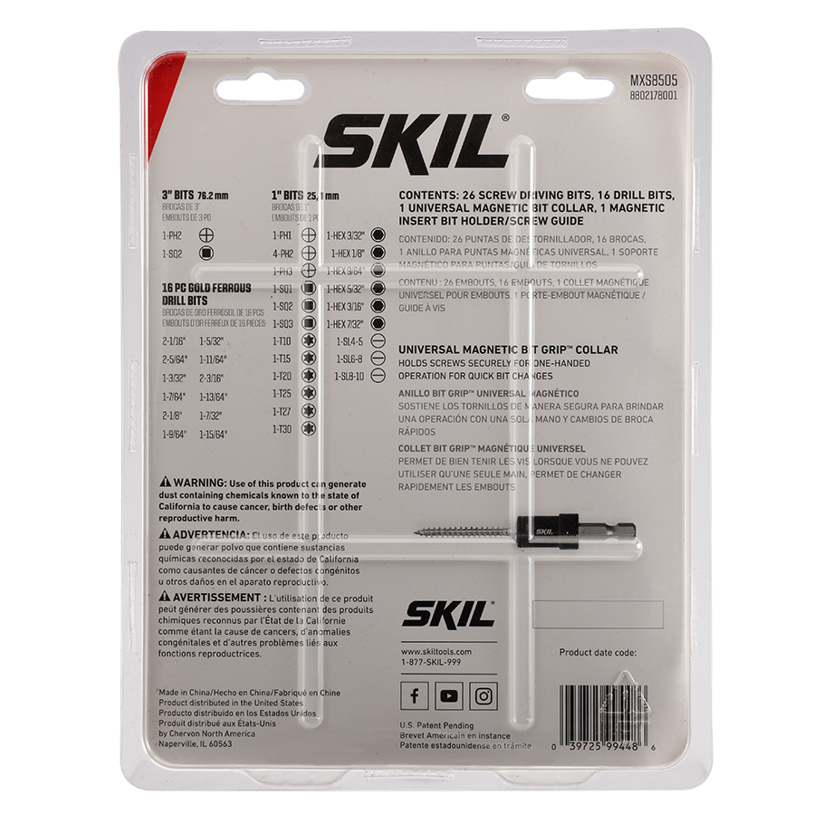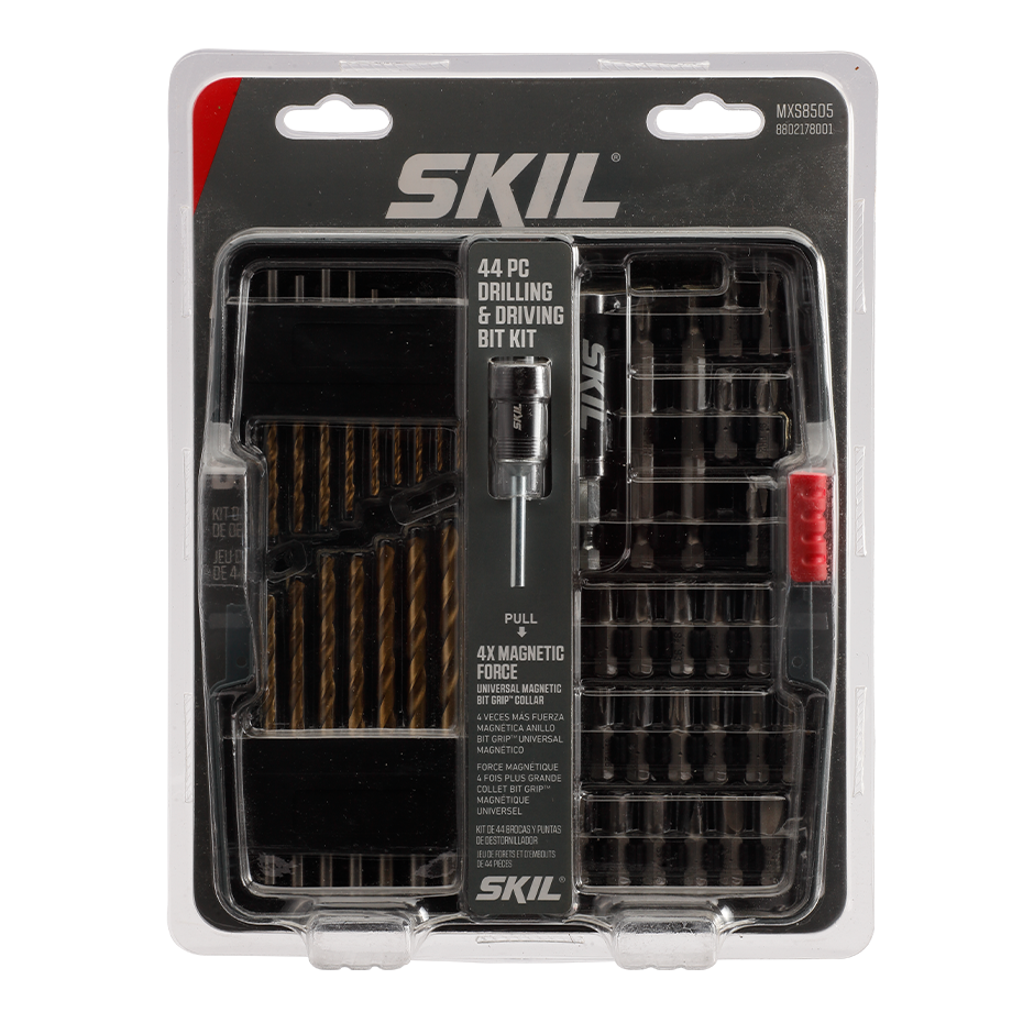 This 44-piece Drilling and Screw driving bit set offers a variety of the most commonly used drilling and driving bits all in one kit. Plus the patented, Bit Grip™ Magnetic Bit Collar holds screws securely for one-handed use. Simply slide the collar onto a 2 IN. impact bit for 4X Magnetic Force to hold fasteners securely. Includes convenient carrying case to keep your bits organized and easy to access.