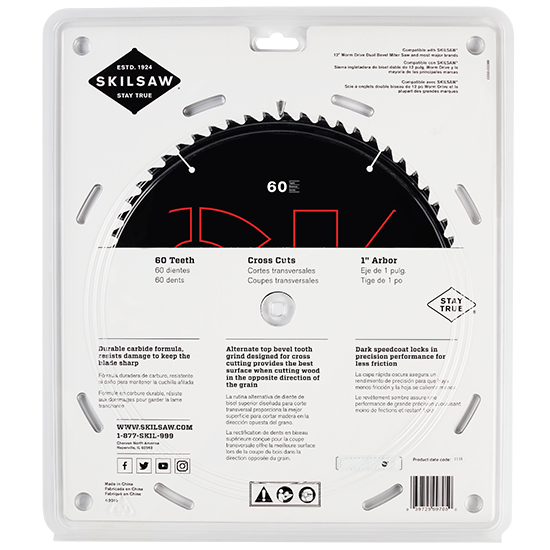 Triple sharp teeth deliver legendary SKIL performance, cut after cut. Durable carbide formula maximizes sharpness and resists wear, for effortless cuts every time. The dark speed coat finish minimizes friction and pitch buildup, so cuts are fast and smooth. Control cut shoulders reduce kickback and a hardened steel plate resists bending and deflection.