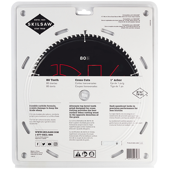 Triple sharp teeth deliver legendary SKIL performance, cut after cut. Durable carbide formula maximizes sharpness and resists wear, for effortless cuts every time. The dark speed coat finish minimizes friction and pitch buildup, so cuts are fast and smooth. Control cut shoulders reduce kickback and a hardened steel plate resists bending and deflection.
