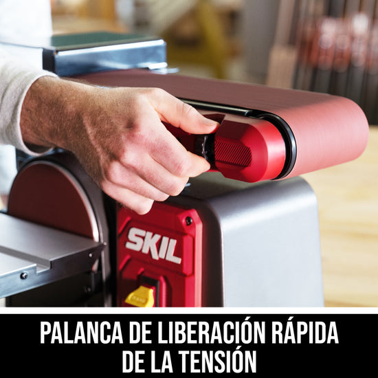 The SKIL 4.5 Amp Belt and Disc Combination Sander is a two-in-one sanding station for a variety of lengths and angles with a powerful 4.5 amp induction motor to power through the toughest jobs with consistent sanding. Its beveling tabletop allows for sanding from 0 to 45 degrees and the belt angle adjustment allows for 0 to 90-degree sanding. Changing sandpaper grits is easy thanks to a quick tension release lever. A miter gauge guides the workpiece when making crosscuts and a dust port that accepts standard 2 ½-inch vacuum hoses minimizes dust in the work area.
