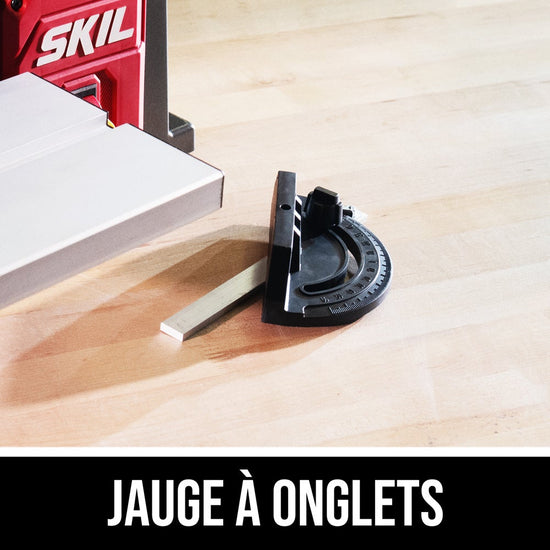 - MITER GAUGE—Guides the workpiece when making crosscuts