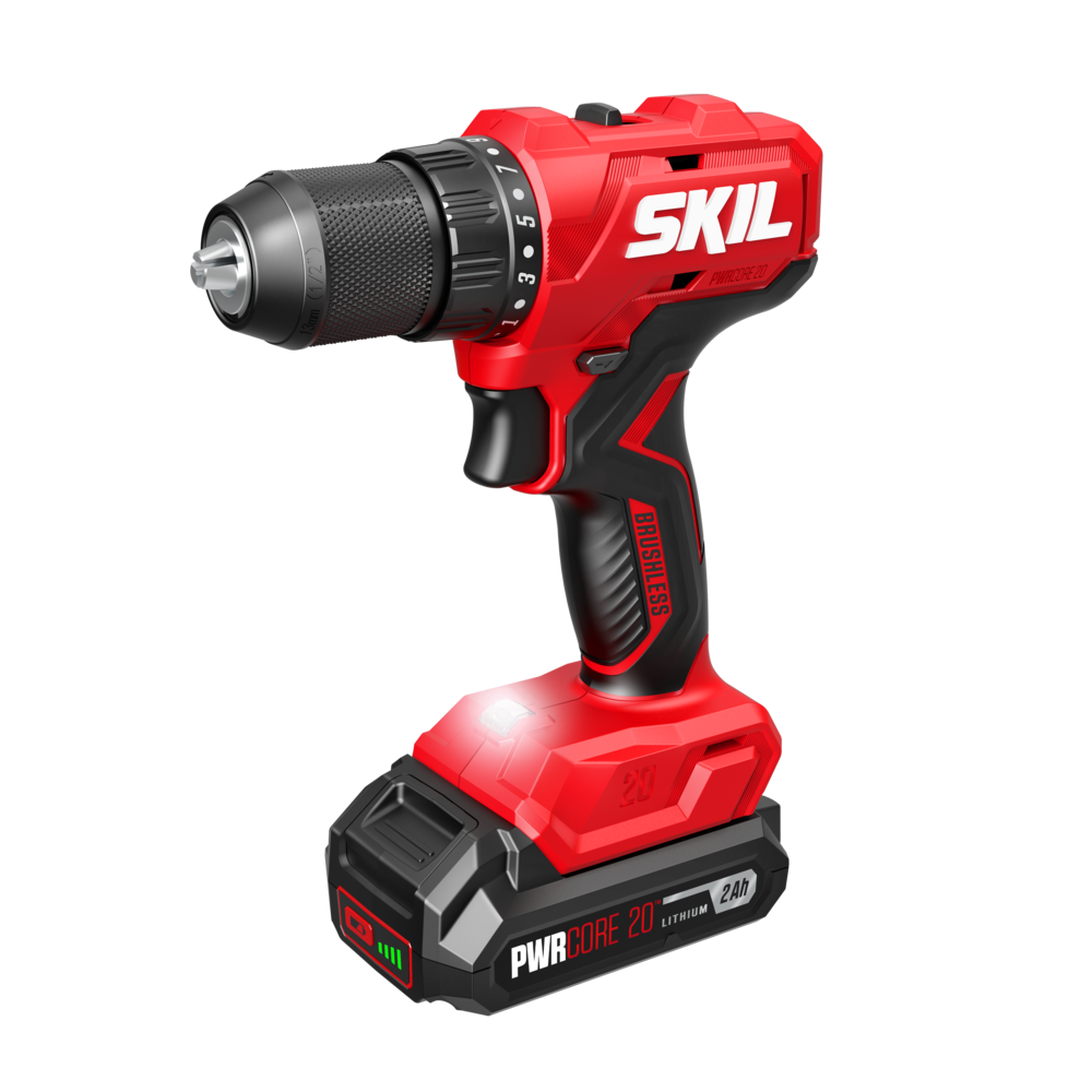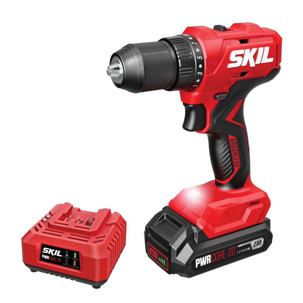 Drive through a variety of surfaces and secure fasteners with power and precision with the SKIL 20V Brushless 1/2-Inch Drill Driver. This cordless drill’s digital brushless motor delivers up to 400 inch-pounds of torque in every drive, and its variable-speed trigger and 17 torque settings plus drill mode provide maximum control for every project. Change bits quickly and easily with its 1/2-inch keyless chuck. Its built-in LED light with pre-light and afterglow provides maximum visibility. The kit includes the 20V cordless drill driver, PWR CORE 20™ 2.0Ah battery, 20V charger, and a 2-inch double-end bit.