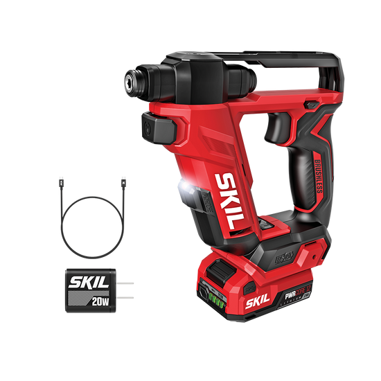 Quickly switch between drilling pilot holes and driving screws with a simple twist using the SKIL 12V/20V Brushless Flip Drill. The cordless flip drill features a two-in-one double collet flip head that allows you to change between drilling and driving bits quickly and easily rather than swapping between bits using the same chuck. Its slim, compact design gives you easy access to corners, edges, and other tight, hard-to-reach spaces. Electronically controlled torque settings plus drill mode easily adapt to the application at hand. Magnetic onboard storage gives you quick access to bits and screws, and an LED worklight with pre-light and afterglow delivers maximum visibility. The included 12V 2.0Ah USB-C battery features two-way rapid charging that allows you to charge the battery or portable devices with its 60W USB-C port. When it’s time to recharge the battery, the multifunctional charger ditches the traditional power tool charging dock for a compact, convenient format that can plug in anywhere. The cordless flip drill kit includes the 12V/20V brushless flip drill, 12V 2.0Ah USB-C battery, 20W USB-C charger, USB-C charging cable, belt clip, 2-inch PH2 screwdriving bit, and (4) hex shank HSS bits.