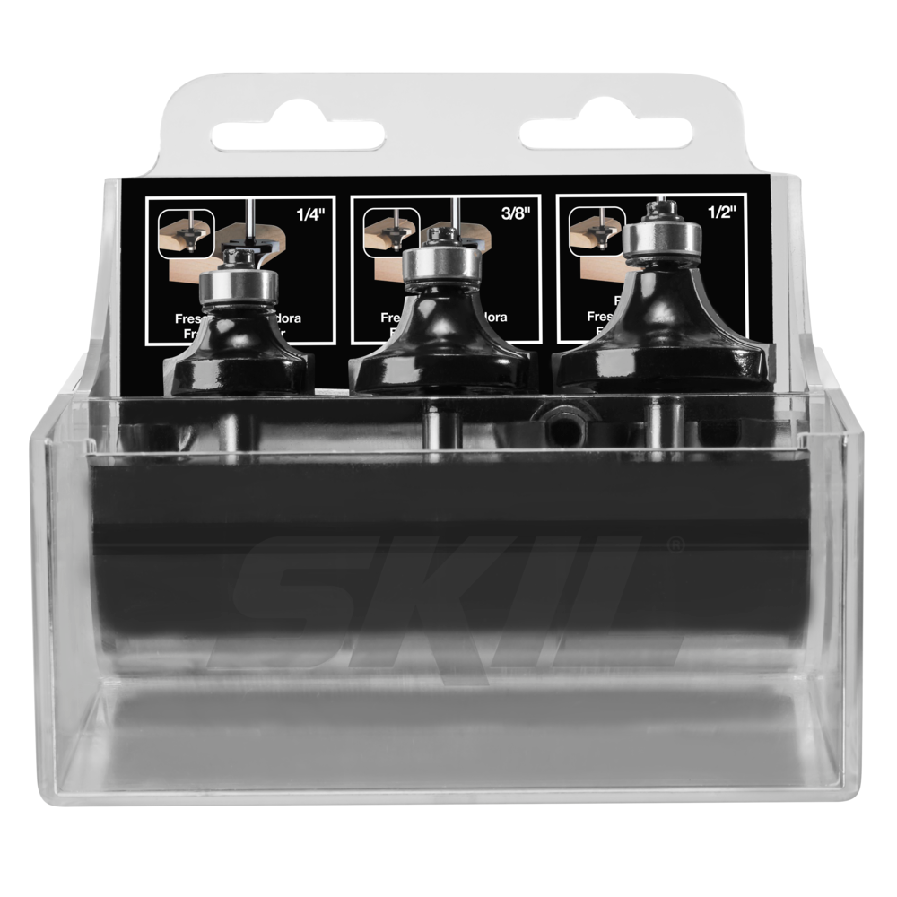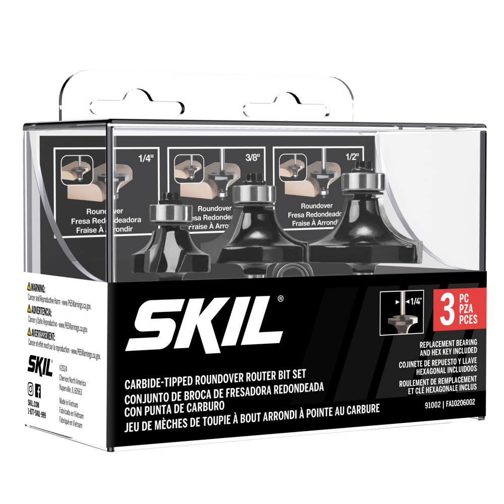 SKIL router bits, tables and accessories are manufactured and designed to the highest quality standards. Router bit sets offer carbide bits with a variety of cutting profiles. Assortments come packaged in solid wood, felt lined cases, with tilting storage compartments, that protect and organize.