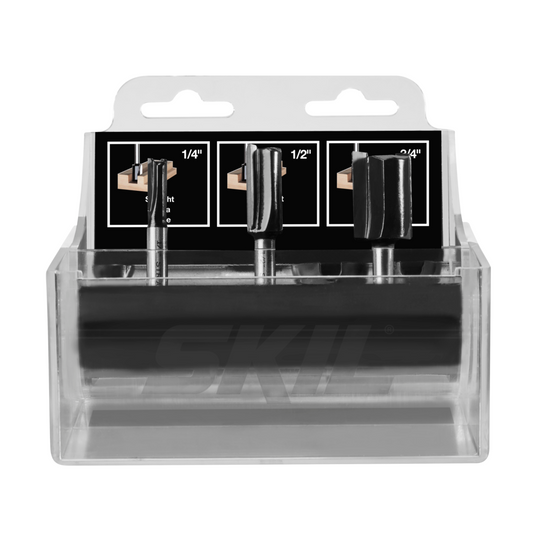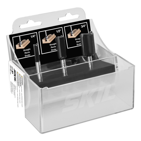 SKIL router bits, tables and accessories are manufactured and designed to the highest quality standards. Router bit sets offer carbide bits with a variety of cutting profiles. Assortments come packaged in solid wood, felt lined cases, with tilting storage compartments that protect and organize.