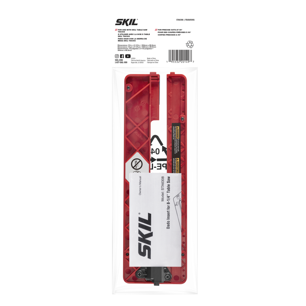 The SKIL Dado Insert Plate for the SKIL 15A 8-1/4 In. Table Saw (TS6308) is an easy-to-install insert that accommodates stackable dado cutters up to 5/8-inch thick. It can cut dado joints for bookshelves, drawers, and more woodworking projects requiring precise 90-degree cuts. It’s designed for use with the SKIL 15A 8-1/4 In. Table Saw (TS6308) and SKIL 13A 8-1/4 In. Table Saw (TS6328) and includes installation fasteners.