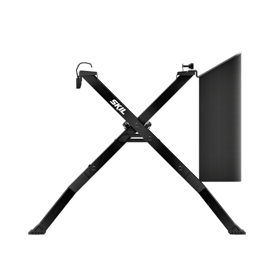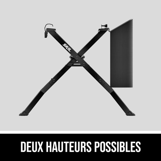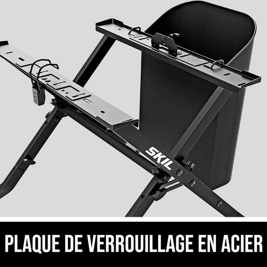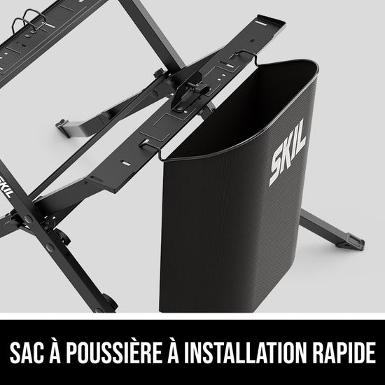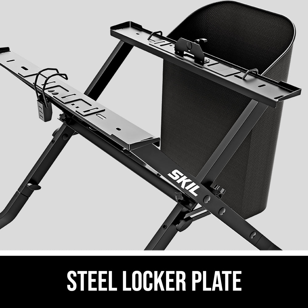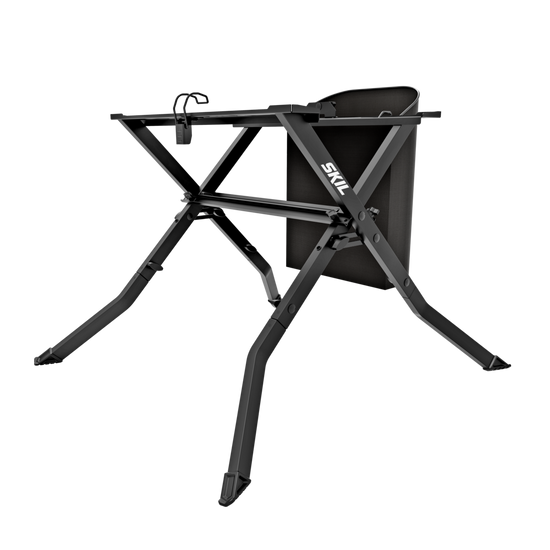The SKIL Folding Saw Stand is designed for use with the SKIL 8-1/4 In. Table Saw (TS6308-00, TS6328-00) and SKIL 5-1/2 In. Flooring Saw. Its folding design delivers quick, tool-free setup with a steel locker plate for increased weight capacity. Two height positions are available for various working conditions. A quick-install dust bag helps keep your workspace clean.