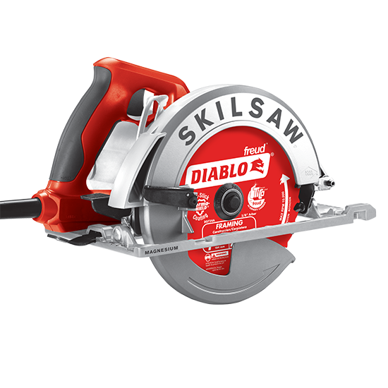 Made for trade pros who take true pride in their work, this is the only all magnesium SIDEWINDER™ Skilsaw on the market. The rugged magnesium housing stays strong and keeps the motor cooler, giving you powerful performance for a lifetime. Legendary SKIL Worm Drive inspired technology has been integrated with our best-in-class Dual-Field™ motor, invented specifically for saws, for pros, for you. Top it off with the 56° precision beveling capacity and you will be unstoppable. Did we say a Diablo blade is included? Don’t mention it.