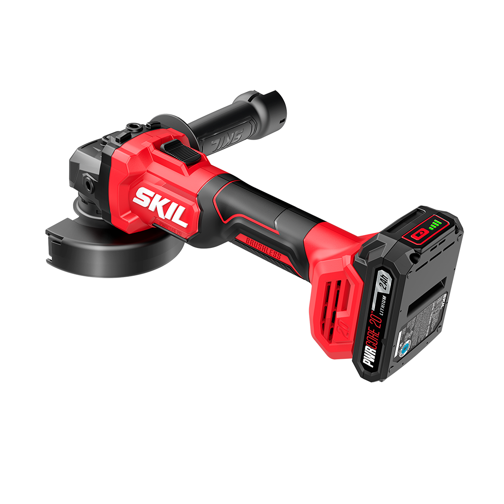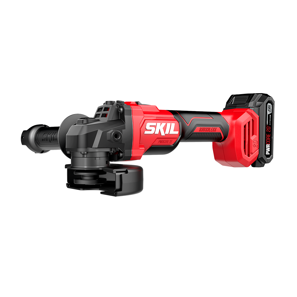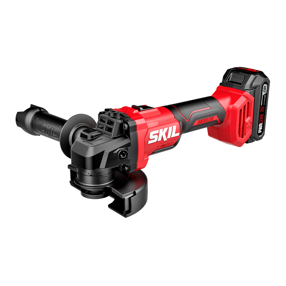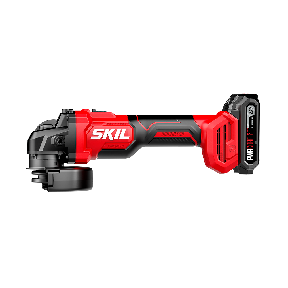 From grinding, sharpening, and polishing metal to cutting tile and more, the SKIL 20V Brushless 4-1/2 In. Angle Grinder balances power and ergonomics to tackle a variety of DIY tasks. The cordless angle grinder features a digital brushless motor that delivers up to 10,000 RPM. It also features a three-position side handle with onboard wrench storage for quick handle adjustments for a variety of working positions. Its tool-free guard change features a one-handed release for quick adjustments of the guard position, while a spindle lock allows quick and easy wheel changes. A dual function lock switch prevents accidental tool startups and locks on for prolonged use. The cordless grinder is compatible with most 4-1/2-inch and 5-inch grinding wheels (sold separately). The kit includes the battery-powered angle grinder, 20V 2.0Ah battery, 20V 60W charger, grinding guard, wrench, side handle, and 2-in-1 guard.