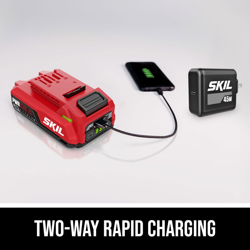 - MULTIFUNCTIONAL 20W CHARGER—Charges USB-C compatible SKIL batteries and other devices