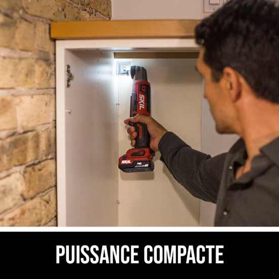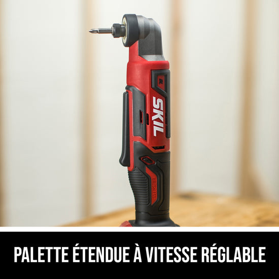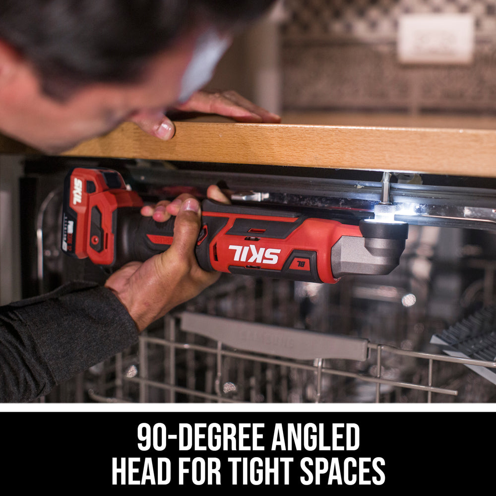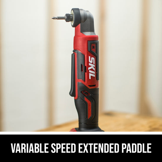 Easily access tight spaces like corners and 90-degree angles when installing cabinets, building shelving and decks, or framing with the SKIL 12V Brushless 1/4 In. Hex Right Angle Impact Driver. This cordless right angle impact driver features a digital brushless motor that delivers up to 900 inch-pounds of torque to drive large fasteners and bolts in a compact design that includes a 90-degree angled head. It features a variable speed paddle with an extended profile for easier operation from multiple grip positions. Its Halo Light™ delivers 5x more light than common LEDs and reduces shadows for better accuracy. The included 12V 2.0Ah USB-C battery features two-way rapid charging that allows you to charge the battery or portable devices with its 60W USB-C port. When it’s time to recharge the battery, the multifunctional charger ditches the traditional power tool charging dock for a compact, convenient format that can plug in anywhere. The battery-powered impact driver kit includes the 12V impact driver, 12V 2.0Ah USB-C battery, 20W USB-C charger, USB-C charging cable, belt clip, and a PH2 bit.