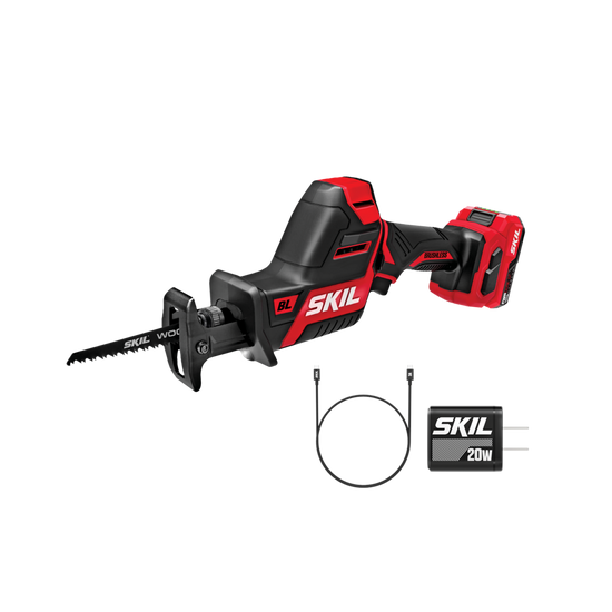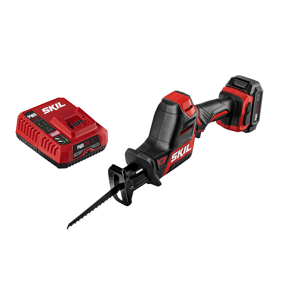 The SKIL PWRCORE 12™ Reciprocating Saw Kit includes a PWRCORE 12™ Lithium Battery with PWRASSIST™ Mobile Charging and PWRJUMP™ Charger. From tackling repairs to major remodeling and demolition projects, this compact power saw makes accurate cuts in hard-to-reach places and overhead. Its compact, high-performance brushless motor makes this electric hand saw strong enough to cut through lumber, PVC piping, tree branches, and metal.