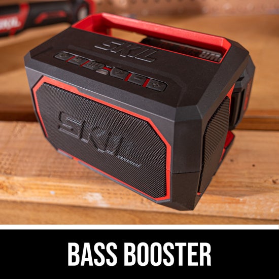 Fill your workspace—or a tailgate—with quality sound from the SKIL PWRCORE 20™ portable speaker. Connect your phone wirelessly with Bluetooth, and use the integrated USB to charge other devices. Control the Bass as well as Play/Pause from the speaker. This Bluetooth speaker uses the same innovative battery technology as your SKIL tools.