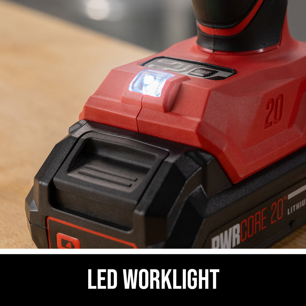 What's included: (1) PWRCORE 20™ Brushless 20V 1/2 In. Impact Wrench [IW6720B-00], (1) PWRCORE 20™ 20V 2.0Ah Lithium Battery [BY519701], (1) 20V Standard Charger [SC535801]