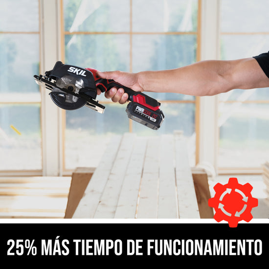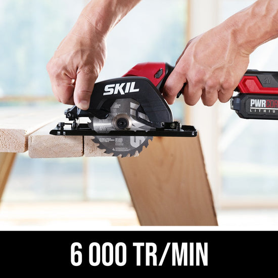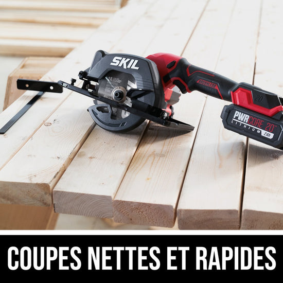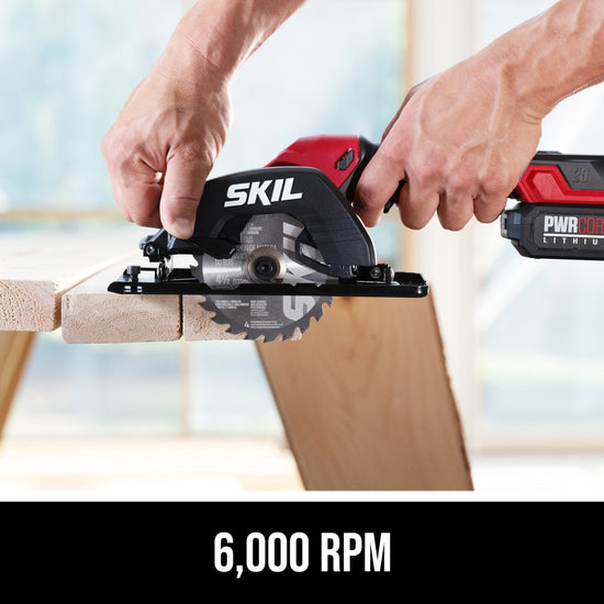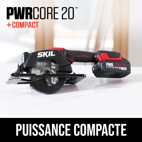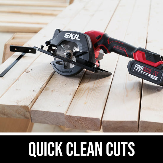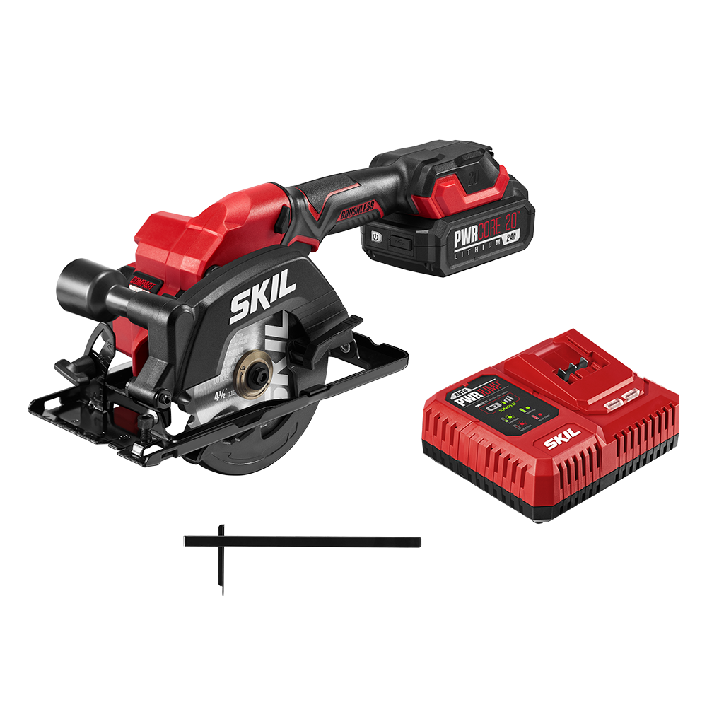Designed to provide big power in a lightweight, compact package, the SKIL PWRCORE 20™ Brushless 20V 4 ½-Inch Compact Circular Saw is made for working overhead or in hard-to-reach areas. This cordless SKIL saw cuts 2x material in a single pass at 90 degrees and 1x material at 45 degrees, and its integrated dust port directs sawdust away from the work area.
