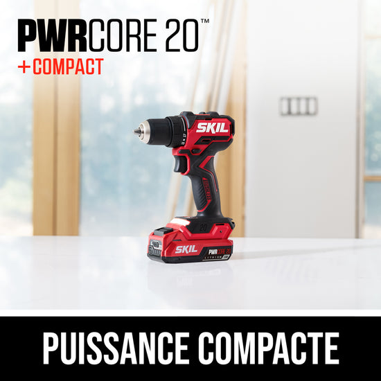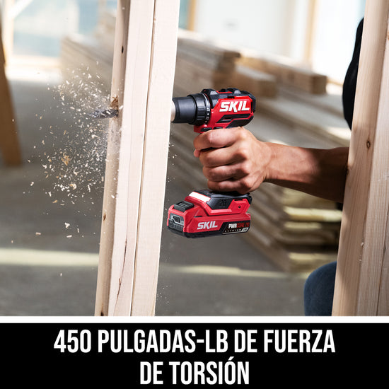Drive through a variety of surfaces with power and precision with the SKIL PWR CORE 20™ 20V Brushless ½-Inch Drill Driver. This compact cordless drill’s digital brushless motor delivers up to 450 inch-pounds of torque in every drive, and its variable-speed trigger and 17 torque settings plus drill mode provide maximum control for every project. Change bits quickly and easily with its ½-inch single-sleeve keyless ratcheting chuck, and light up your workspace for up to 10 minutes with the LED light strip with pre-light and after-glow. The drill driver comes with a PWR CORE™ 2.0Ah 20V USB-C Battery featuring two-way rapid charging to charge the battery or personal devices with its integrated USB-C port. This cordless electric drill kit includes the 20V cordless drill driver, a PWR CORE 20™ 2.0Ah 20V USB-C lithium battery, 45W USB-C PD charger and charging cable, belt clip, and screwdriving bit.