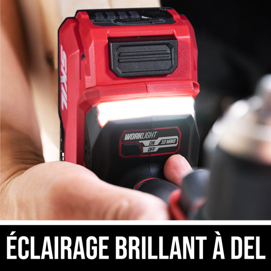 - INNOVATIVE STRIP LED WORKLIGHT—Provides broader and brighter illumination, and lights up your entire workspace for up to 10 minutes