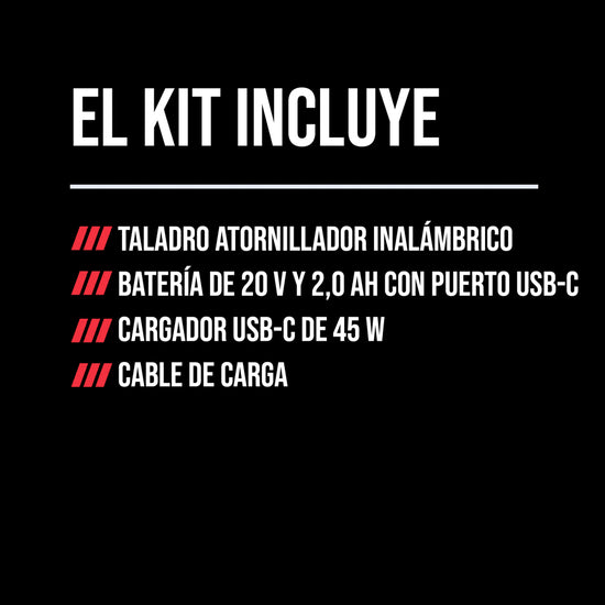 - 20V CORDLESS DRILL DRIVER KIT—Set includes a PWR CORE 20™ 2.0Ah 20V USB-C lithium battery with a 45W USB-C PD charger and charging cable