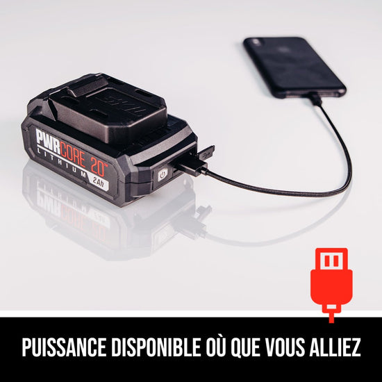 - POWER ON THE GO—Plug in to the battery’s USB port wherever, whenever with PWRASSIST™ mobile charging
