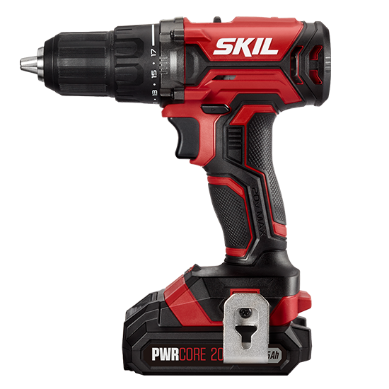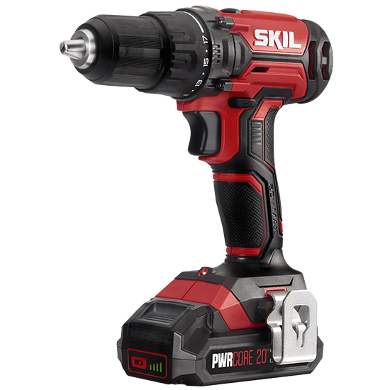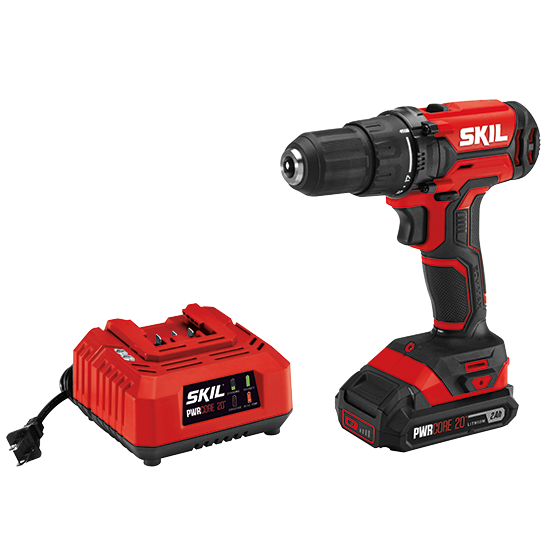 A Power Drill That Gets The Job Done. Tightening screws? Done. Assembling new furniture? Done. Drilling through wood, plastic or metal surfaces? Done, done and done. The SKIL 20V 1/2 Inch Cordless Drill Driver is the power drill you want for any home project. This power drill comes with a PWRCORE 20™ 2.0Ah Lithium Battery and 20V Charger.