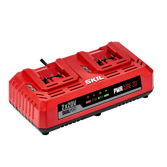 The PWR CORE 20™ Dual Port 20V lithium-ion battery charger pairs with all your existing SKIL PWR CORE 20™ batteries. Charge 2 SKIL PWR CORE 20™ batteries at once and get a full charge in as little as 1-hour. The LED charge indicators show bright lights so you can always know the charge status, even from a distance. Whether it be your SKIL PWR CORE 20™ tools or outdoor power equipment, the Dual Port Charger will keep you powered on at all times.